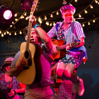 The Hypocrites is constantly experimenting with the role of the audience, turning the traditional model of observing a show upside down for its creative, immersive adaptations of Gilbert & Sullivan’s Pirates of Penzance, The Mikado, and H.M.S. Pinafore. The Pirates of Penzance, for example, was staged promenade style, with the audience on its feet, able to walk around the carnival-style action. Its adaptation of the show was also produced by the American Repertory Theatre in Cambridge, Massachusetts, as well as the Actors Theatre of Louisville.